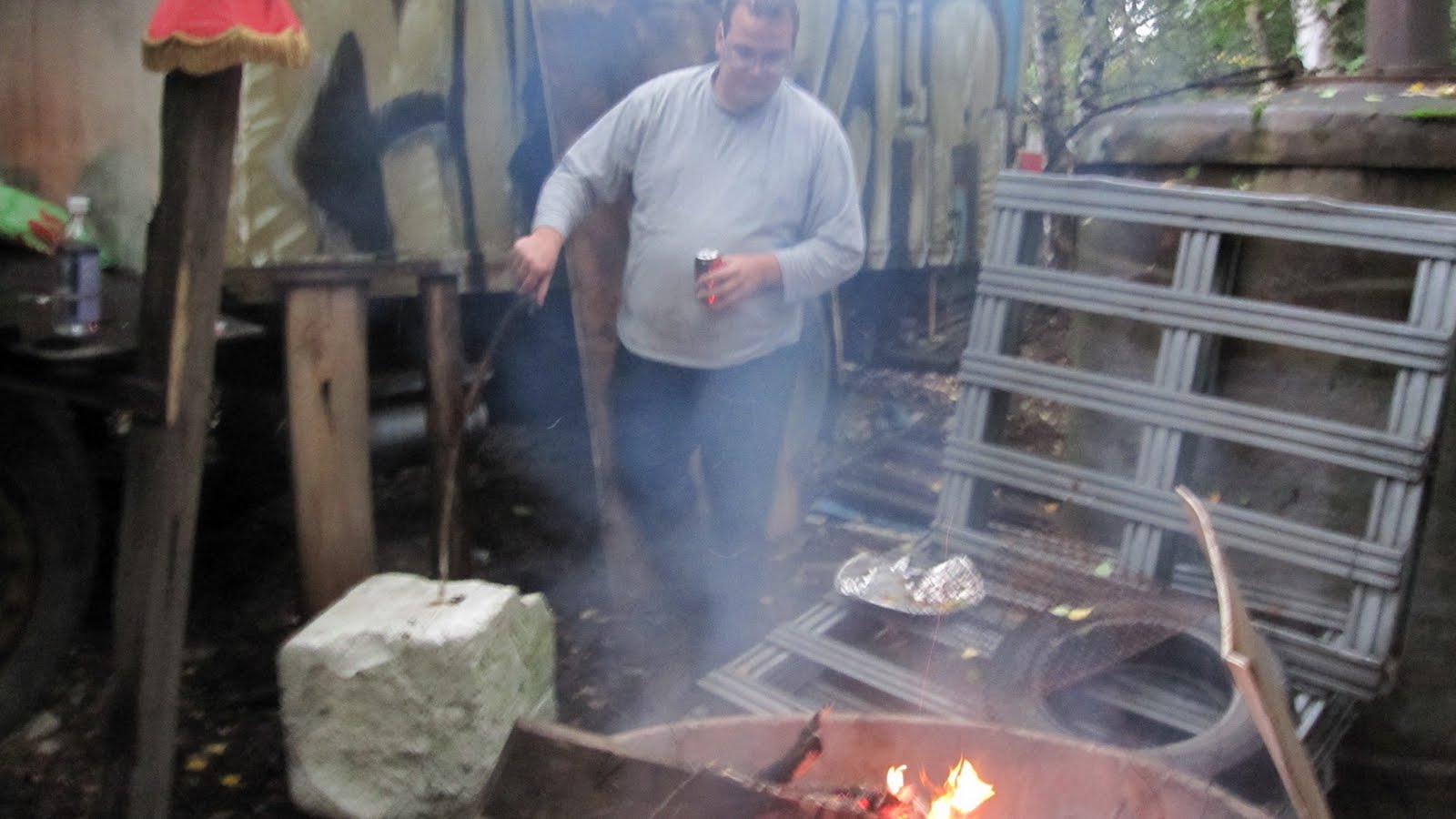Later in the dark forest, a sofa making a nice seat for the audience, Murska Murre gives us a great, intense melon crushing fire show starting with his gloves in flames, giving his friends a heart attack since they know that Murre doesn't know any of that shit. He also presents some of his freestyle rap skills after some more booze, have a look:
